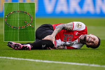 Spelers en stafleden van Feyenoord hebben met een mooi gebaar steun betuigd aan de zwaar geblesseerde Quilindschy Hartman. Tientallen Feyenoorders vormden op de middencirkel van de Kuip de letter Q – verwijzend naar de bijnaam van de linksback – en maakten met hun handen een hartje