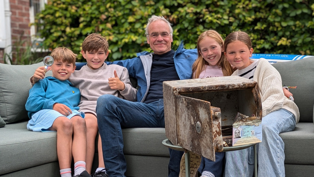 De zoektocht begint eind april. Ties, Pim, Mia en Lauren gaan suppen, zoals ze wel vaker doen. In het water achter de Julianalaan, net over de grens met Haarlem, zien zij iets opvallends. Een grote kluis. Zwaar ook. Te zwaar om het water te halen en op de surfplank mee te nemen. Eerst terug naar huis. Ze hebben hun spullen voor het magneetvissen nodig.
